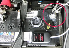 2.激カンタム・イオンブラックグリースを、+-端子と全タイヤのバルブねじ山に塗ります。